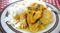 A flavourful vegetable curry consisting of aubergines and potatoes.